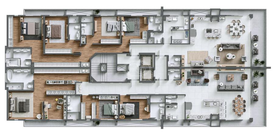Apartamento no Edifício Bay House na Praia Brava em Itajaí com 226,00m² privativos, 04 suítes sendo 01 suíte máster com closet e hidromassagem, lavabo, sala de estar, sala de jantar, sacada, cozinha, churrasqueira à carvão, área de serviço e 04 vagas de garagem.