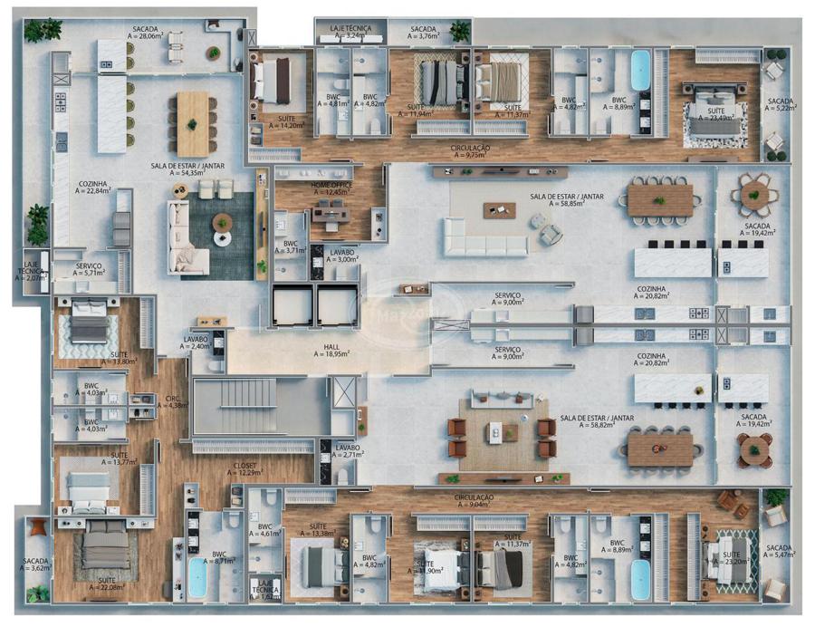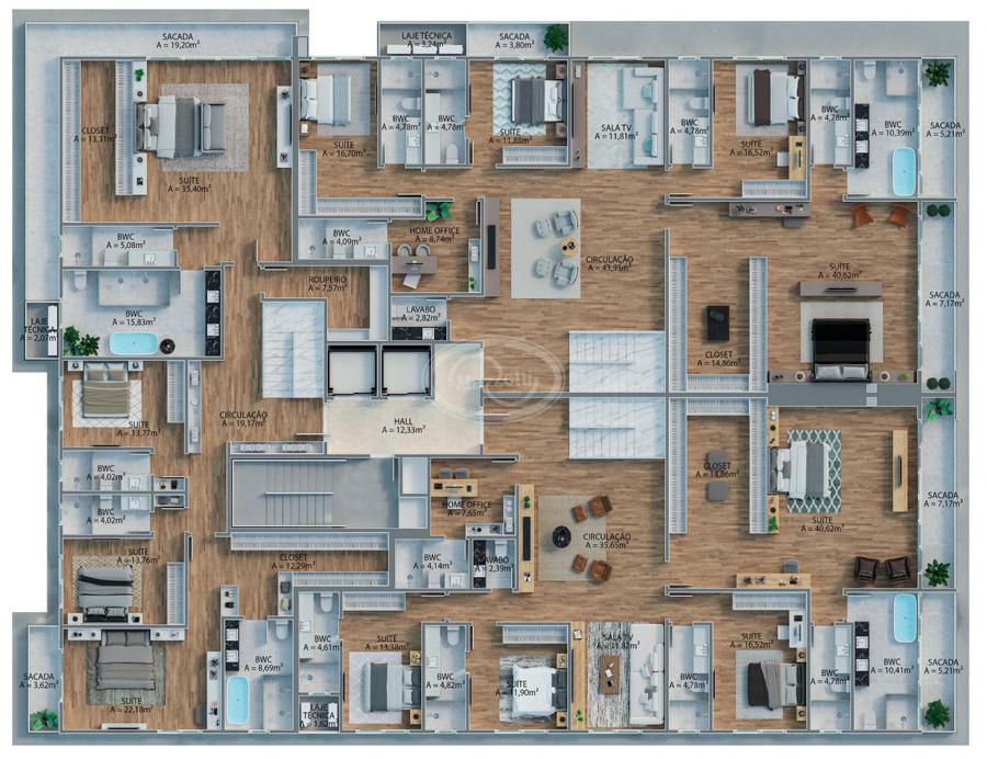 Aptos com 219m² a 251m² privativos