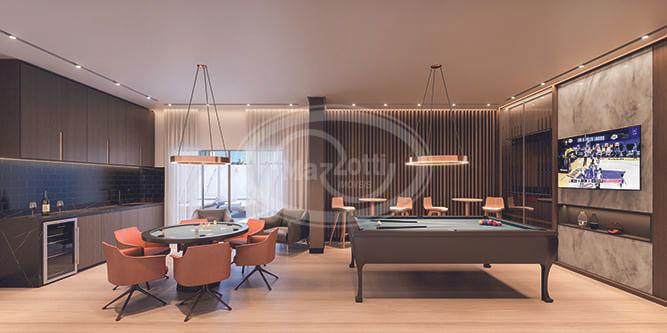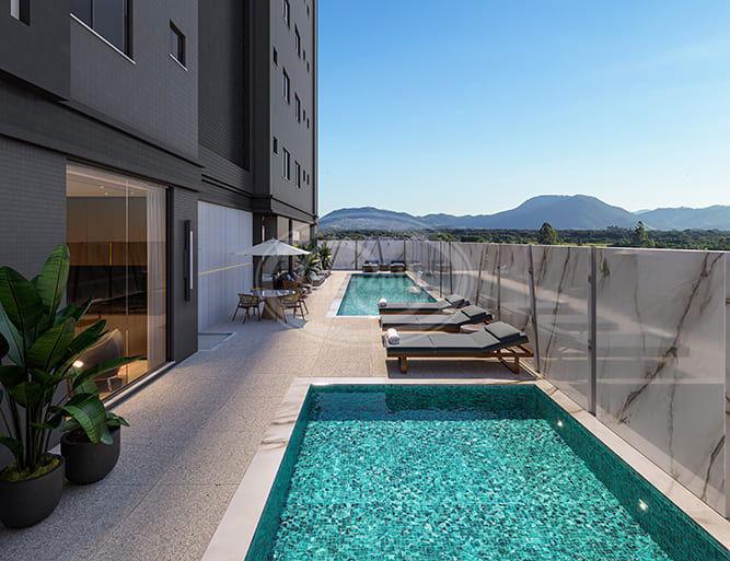 Área de lazer de 850m² mobiliada e decorada