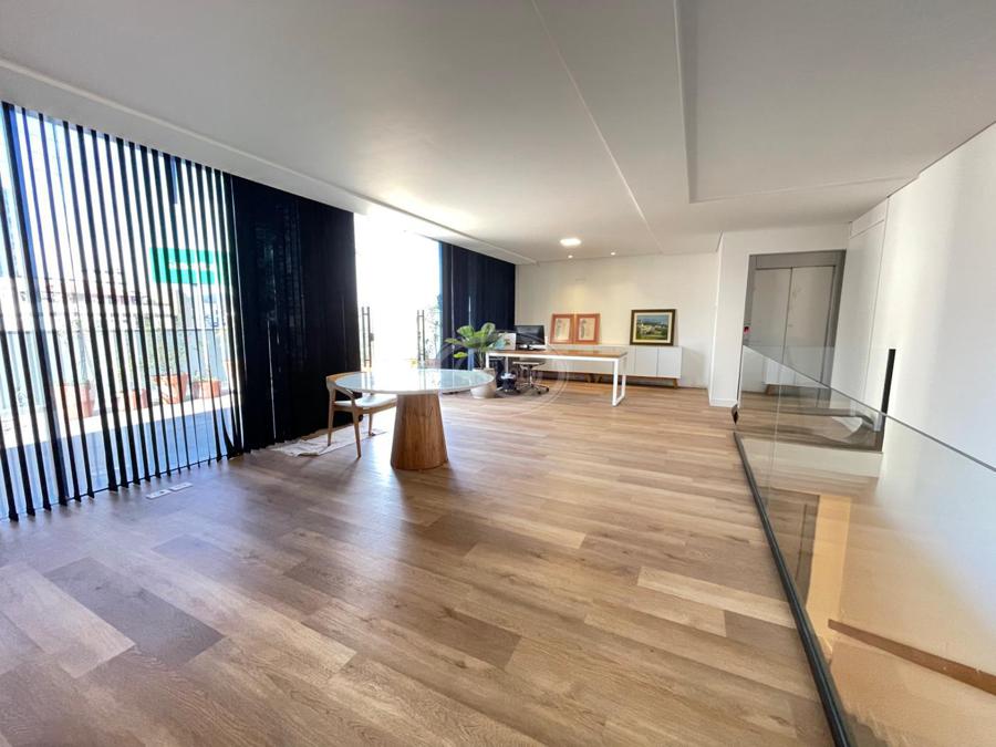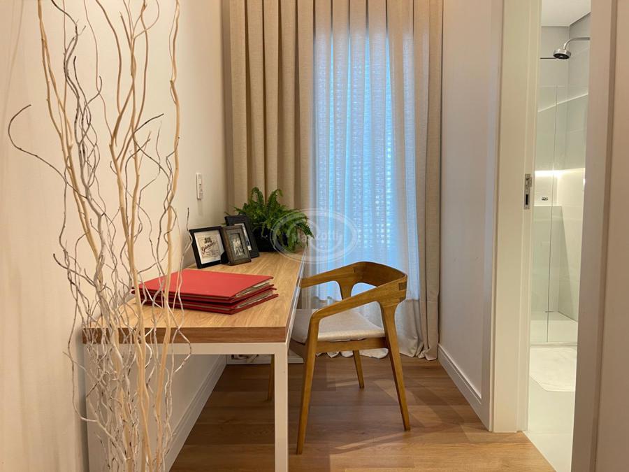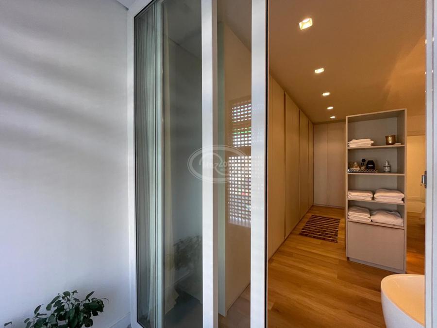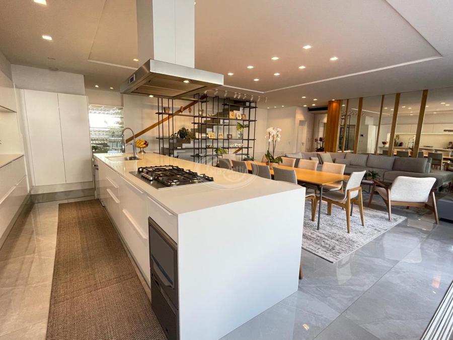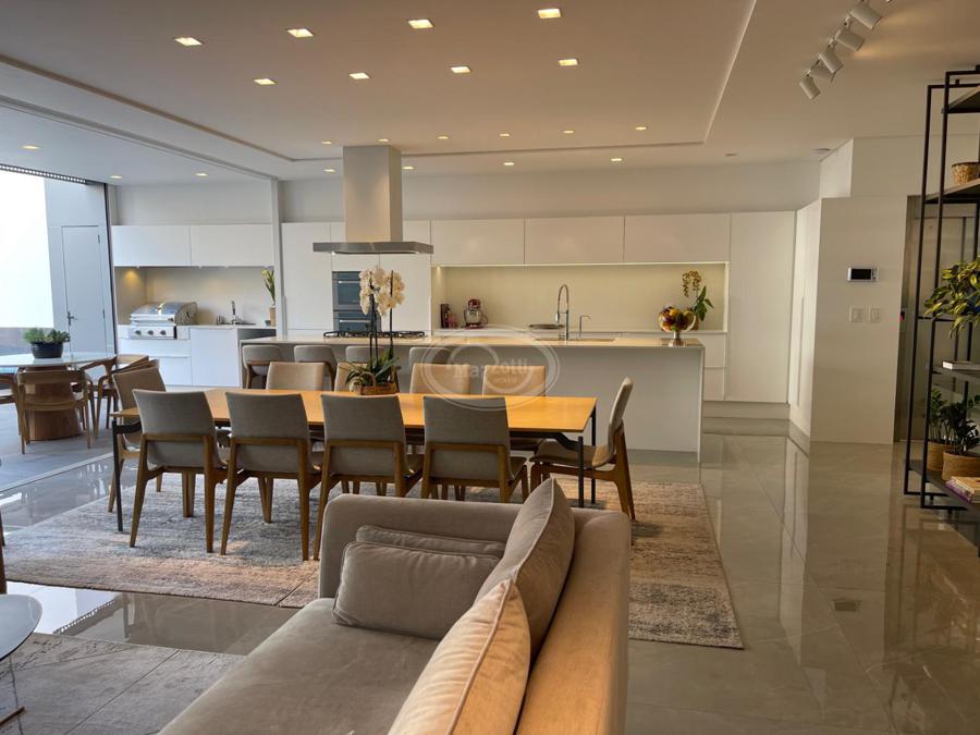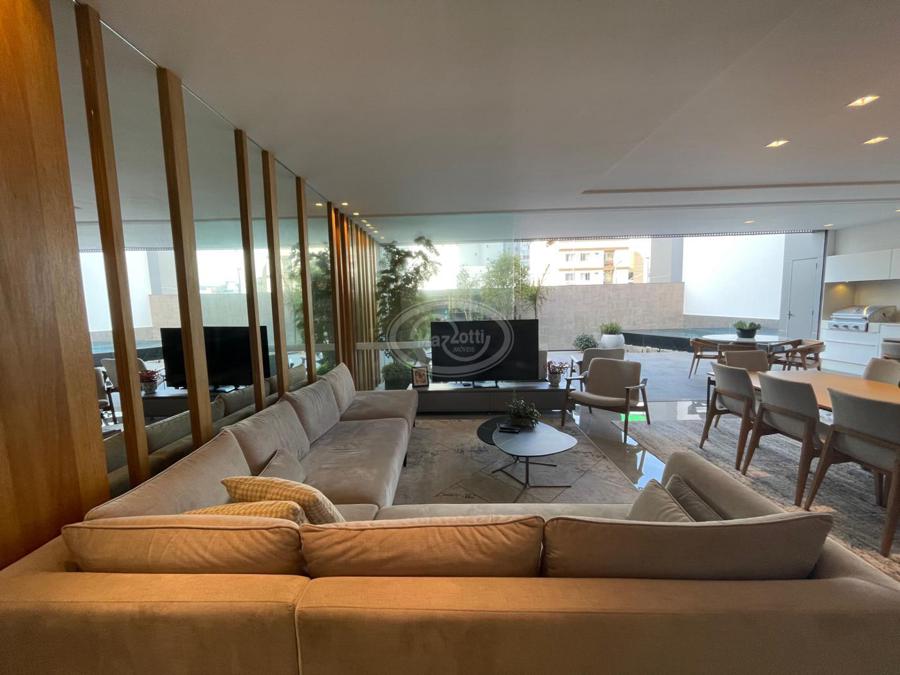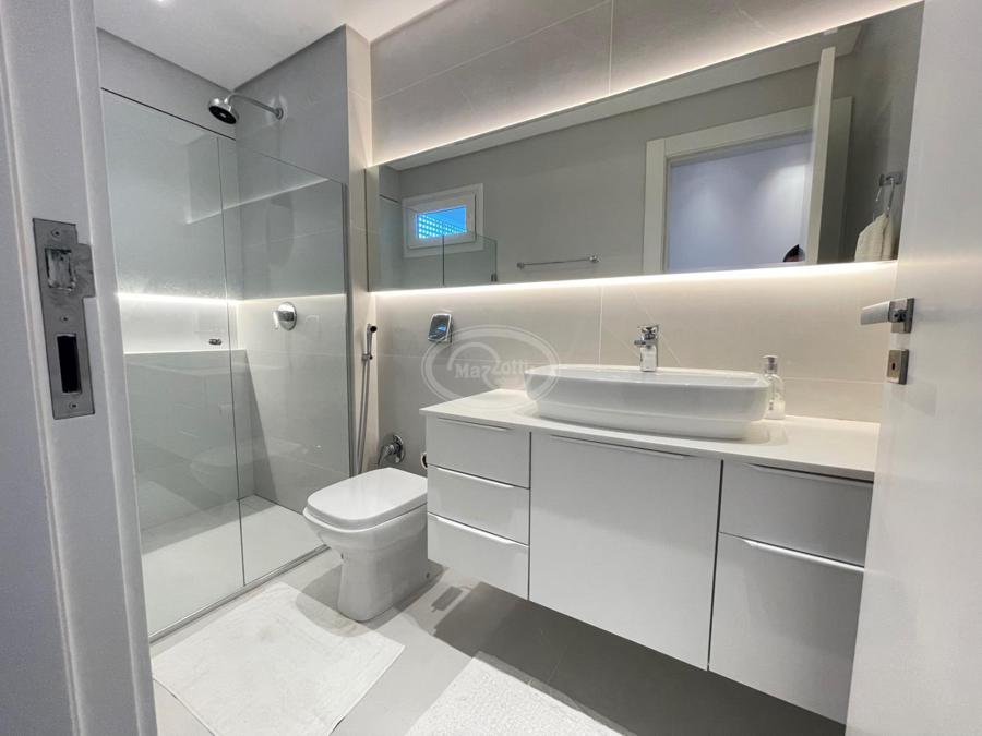 No Primeiro andar se encontra a garagem, com 7 vagas. Já no Segundo andar, possui um amplo living, sala c/ 2 ambientes, lavabo, cozinha americana, área externa com churrasqueira americana e lavanderia separada. As 3 suítes se encontram no terceiro andar, sendo uma delas Master, com banheira de imersão e closet com desumidificador nos armários e também há um depósito para malas. O quarto andar conta com um amplo escritório, com varanda externa, que pode ser facilmente transformado em mais uma suíte. A casa ainda conta com um diferencial: no primeiro e segundo andar, é possível acionar um portão eletrônico, que tranca a casa por completo, trazendo ainda mais segurança e conforto.