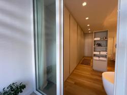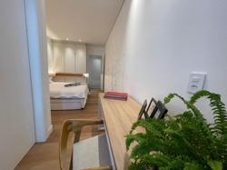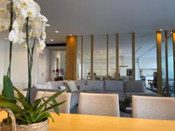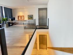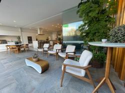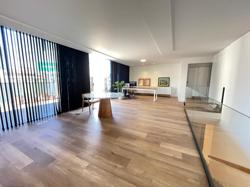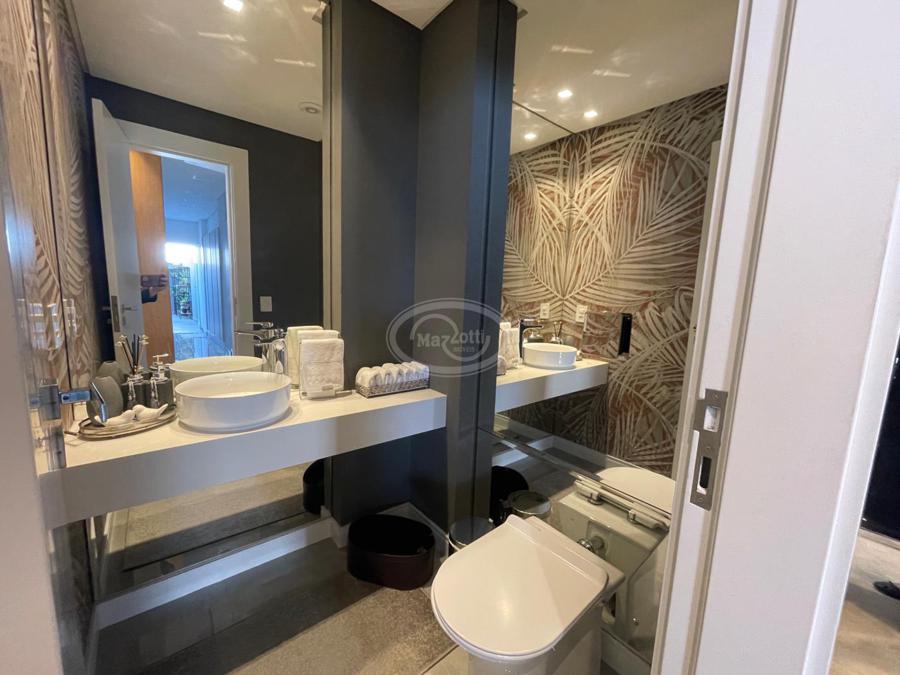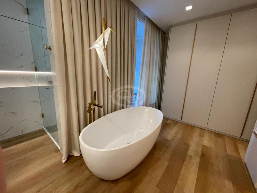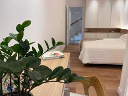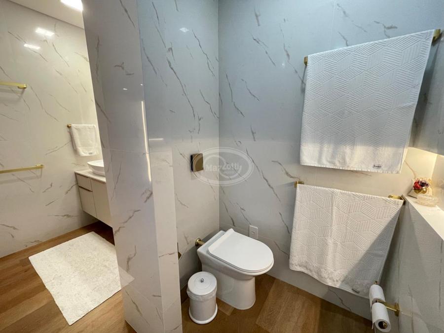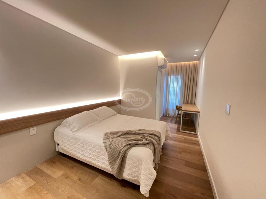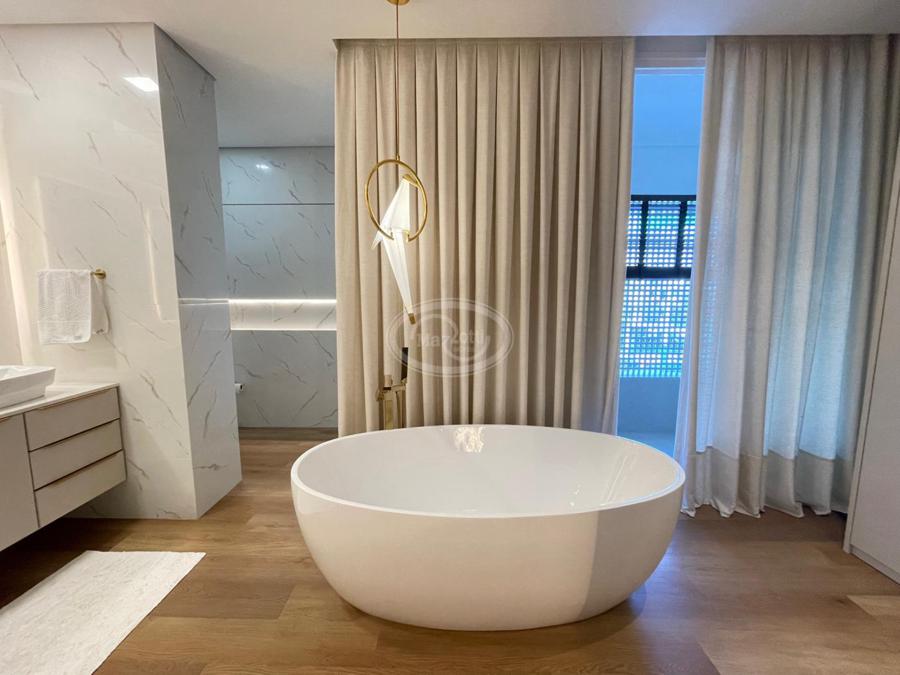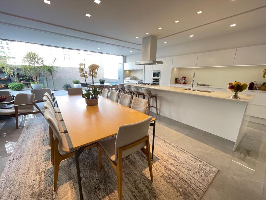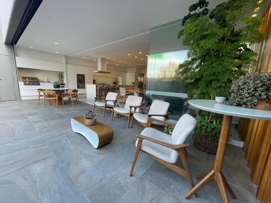 No Primeiro andar se encontra a garagem, com 7 vagas. Já no Segundo andar, possui um amplo living, sala c/ 2 ambientes, lavabo, cozinha americana, área externa com churrasqueira americana e lavanderia separada. As 3 suítes se encontram no terceiro andar, sendo uma delas Master, com banheira de imersão e closet com desumidificador nos armários e também há um depósito para malas. O quarto andar conta com um amplo escritório, com varanda externa, que pode ser facilmente transformado em mais uma suíte. A casa ainda conta com um diferencial: no primeiro e segundo andar, é possível acionar um portão eletrônico, que tranca a casa por completo, trazendo ainda mais segurança e conforto.