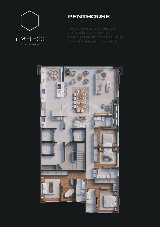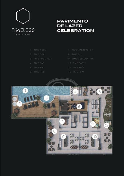 Edifício com 1 Torre com 32 pavimentos, 3 Salas comerciais, 4 Pavimentos de garagens, 35 Unidades habitacionais, Fachada com sistema Balcon Juliet Glass, Acesso digital com biometria, Vídeo porteiro digital em cada apartamento, 3 Tomadas para reabastecimento de carro elétrico, Sistema de monitoramento, 3 Pavimentos de lazer (Celebration, Wellness e Louge Zen), Time BBQ, Time Out, Time Celebration, Time Party, Time Mastercheff, Time Play e Space Lux.